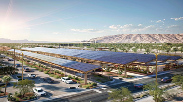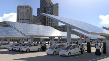 Scalable sizes from 10 to 50 super DCFCs with power over 300 KW, solar array, and BESS